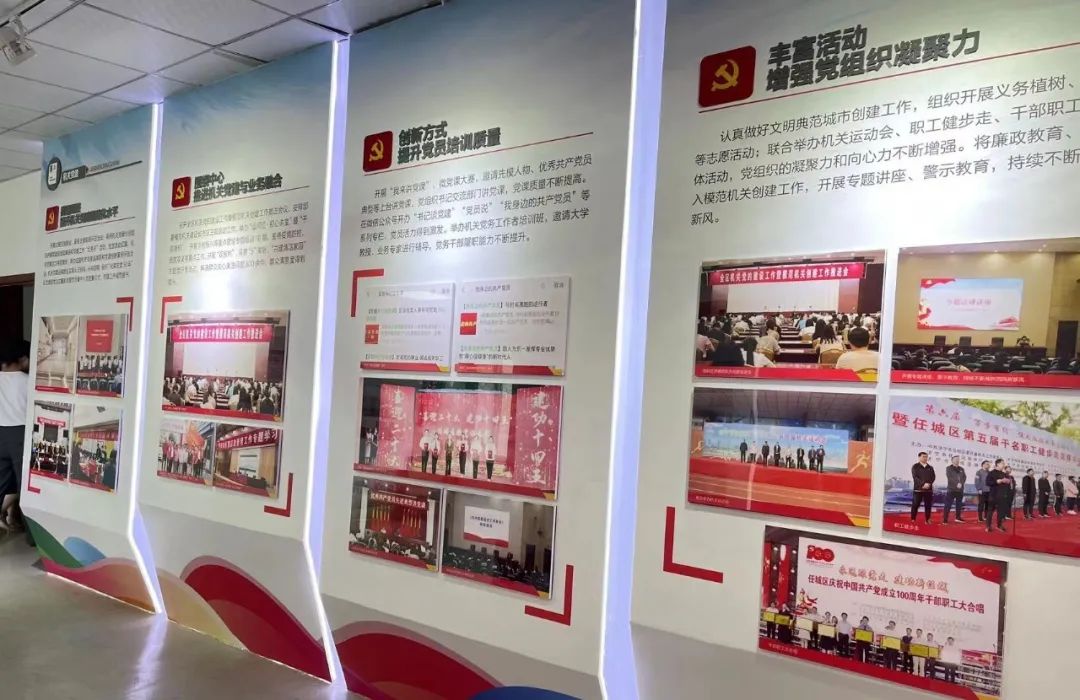 任城區(qū)黨史陳列館含走進任城篇、古韻任城篇、紅色任城篇、富強任城篇、幸福任城篇、美麗任城篇及黨的十九大精神專題展覽等七大展廳。其中紅色任城篇和幸福任城篇以“站起來”“富起來”“強起來”“美起來”等多板塊介紹了中國共產(chǎn)黨領(lǐng)導(dǎo)人民在革命、建設(shè)和改革各個歷史時期所走過的光輝歷程,在社會主義現(xiàn)代化建設(shè)不同階段取得的一個又一個勝利。